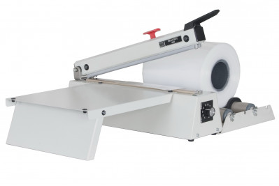 Soudeuse de table avec système de coupe et contrôle du temps de soudure par minuterie. Largeur de soudure: 300 mm.