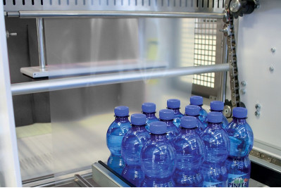 La fardeleuse automatique à une structure monobloc. Entrée à 90° avec regroupement automatique et dispositif pour l'insertion de plaque carton. Pouvant atteindre une cadence de 25 paquets par minute.